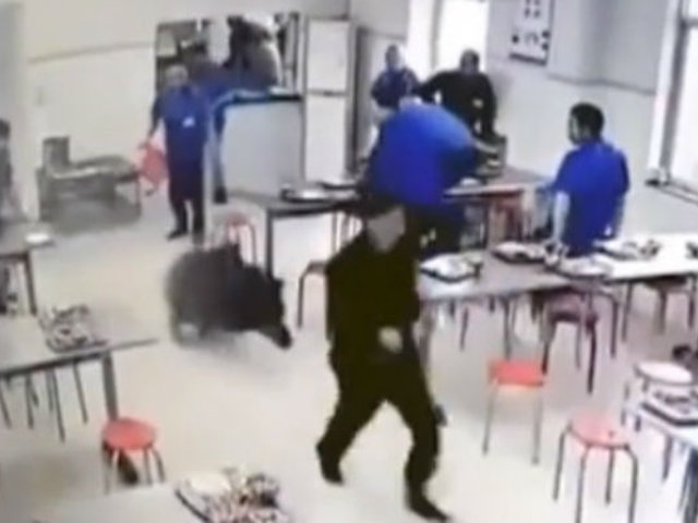 Cámaras grabaron cómo un grupo de trabajadores de una fábrica, ubicada en China, se llevaron un gran susto, luego que un jabalí ingresara a una de las cafeterías, mientras todos se encontraban tomando un break.
