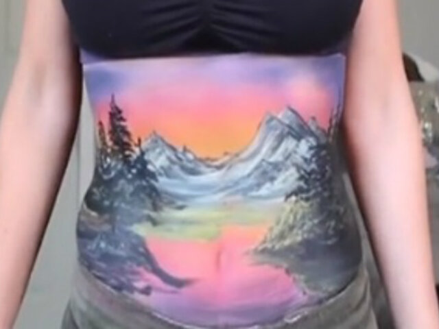 Jen Seidel (50) es una artista estadounidense que decidió usar su barriga como lienzo para su nueva obra de arte. Recreo unas bellas montañas en su abdomen, con la conocida técnica de Bodypaint.