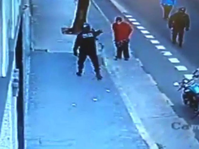 Tras la queja de los choferes y transeúntes, la policía intervino al revoltoso, que sacó un arma blanca para enfrentar a la autoridad. Uno de los agentes le propinó una patada en el pecho que provocó que el hombre se desplomara en el acto en el suelo.