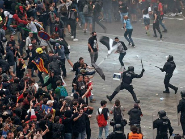 La gresca no dejó heridos, pero sí fueron destruidos vehículos de la Guardia Civil, según confirmó AFP. La policía catalana anunció mediante redes sociales que estas acciones constituyen un “delito grave”.