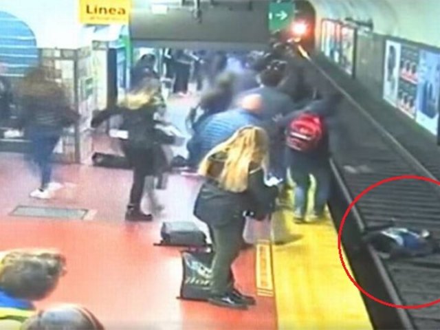 El milagroso hecho fue registrado por las cámaras de seguridad de la estación central del Metro de Buenos Aires, Argentina.
