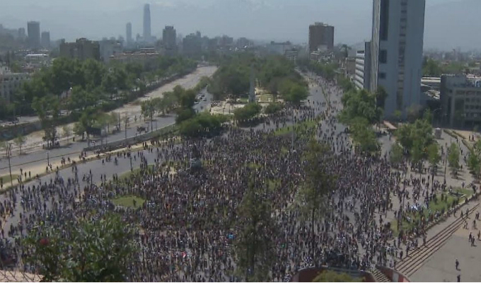 Además de la capital, Santiago, las movilizaciones vienen produciéndose en diversos puntos de Chile, pero de forma pacífica.