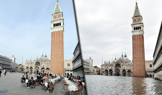 Venecia: el impactante antes y después tras las inundaciones por la marea alta