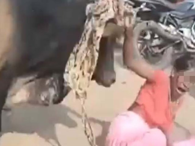 En la India, un toro de unos 900 kilos circulaba por una calle de la ciudad de Bharuch, cuando embistió con brutalidad a una mujer que caminaba en ese instante por la calzada cerca a un mercado.