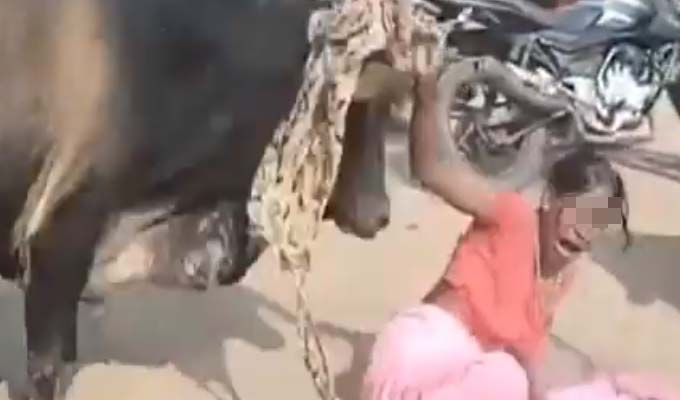 Toro embiste de forma brutal a una mujer en la India