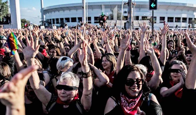 En Chile, miles de mujeres, la mayoría de más de 40 años, fueron convocadas por las redes sociales para congregarse frente al Estadio Nacional para protestar contra la violencia de género, para realizar la performance de “Un violador en tú camino”.