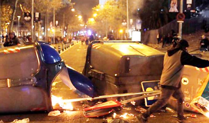 En Barcelona, la protesta convocada por la plataforma anónima Tsunami Democràtic con motivo del Clásico entre el club catalán y su eterno rival el Real Madrid ha derivado en disturbios en los alrededores del estadio Camp Nou, donde lanzaron objetos contundentes e incendiaron barricadas.