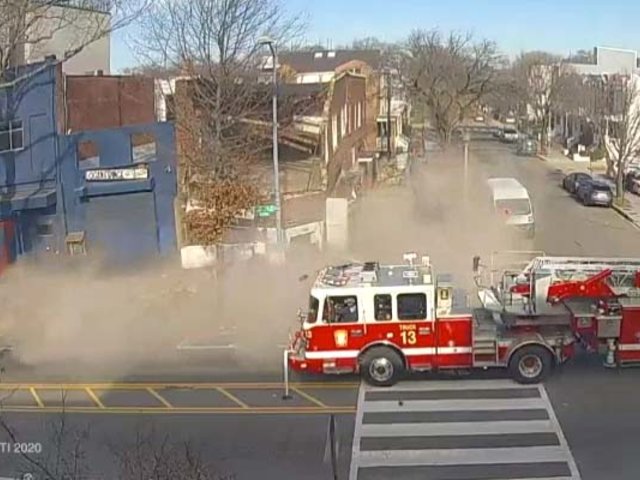 Instantes después de que los ladrillos y escombros golpearon el suelo, un camión de bomberos que pasaba por el lugar se detuvo para brindar la ayuda necesaria.