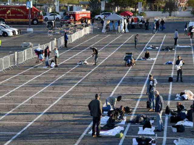 Coronavirus en Estados Unidos: indigentes duermen en suelo de estacionamiento de Las Vegas