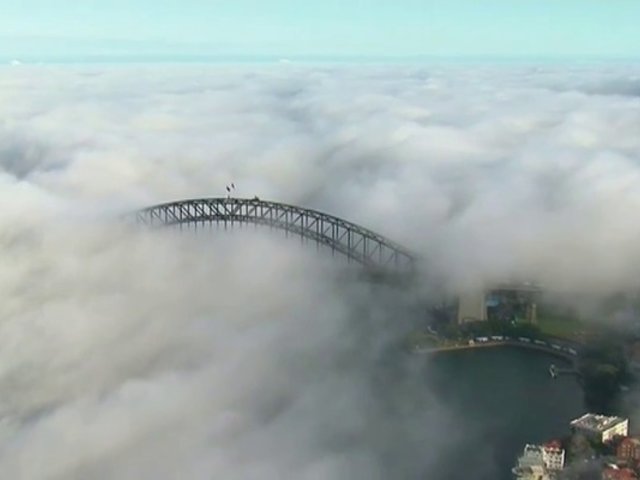 Una de las ciudades más importantes de Australia, Sidney, fue cubierta por una densa neblina que dejó al descubierto solo algunos edificios y al emblemático puente de su bahía.