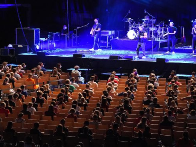 Los asistentes pasaron por los controles correspondiente en donde se les midió la temperatura, ellos usaron mascarillas y además se les colocaron implementos para rastrear sus movimientos durante el espectáculo musical.