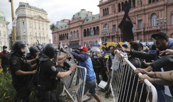 Desde muy temprano, Diego Armando Maradona es velado en la Casa Rosada en Argentina donde miles de personas se acercaron para darle el último adiós. Sin embargo, hace algunos minutos se han registrado disturbios entre la policía y los fanáticos.