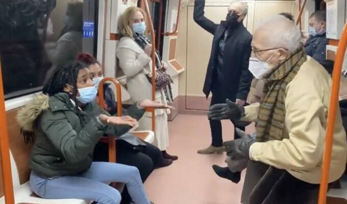 El metro de Madrid, en España, fue escenario de un fuerte altercado verbal entre un anciano pidió de mala manera a una joven que se colocara bien la mascarilla, debido a que no cubría su nariz.