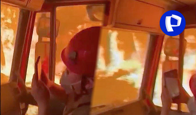 Impactantes imágenes llegan desde Turquía, donde miembros del escuadrón de bomberos mostraron un video en el que cruzan en medio del fuego de los incendios forestales dentro de su unidad vehicular.