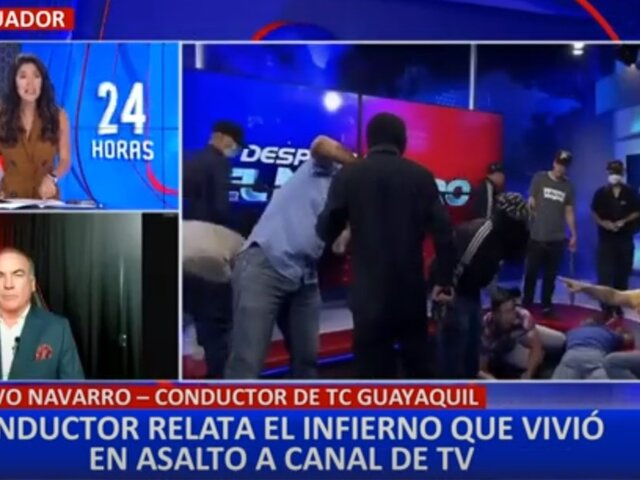 Gustavo Navarro, conductor de un programa de noticias de TC Guayaquil, compartió la terrorífica experiencia que vivieron en el canal. En una entrevista para "24 Horas Mediodía", describió la difícil situación en la que sus colegas se encontraron, enfrentándose a delincuentes que apuntaban escopetas a la cabeza de varios periodistas.
