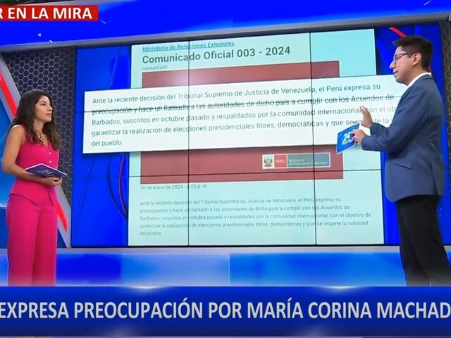 “Ante la reciente decisión del Tribunal Supremo de Justicia de Venezuela, el Perú expresa su preocupación y hace un llamado a las autoridades de dicho país a cumplir con los Acuerdos de Barbados, suscritos en octubre pasado y respaldados por la comunidad internacional, con el objetivo de garantizar la realización de elecciones presidenciales libres, democráticas y que se respete la voluntad del pueblo”, se lee el comunicado oficial.