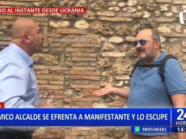 En las imágenes registradas por uno de los testigos, se puede observar al polémico burgomaestre acercarse al manifestante, a quien le escupió agua en la cara hasta en dos ocasiones y lo acusó de "provocarlo".