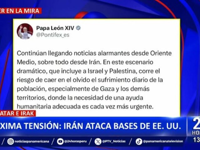 El Papa León XIV se pronunció tras conocerse que Irán respondió a los ataques del gobierno de los Estados Unidos, lanzando misiles a bases norteamericanas ubicadas en los países de Irak y Qatar.