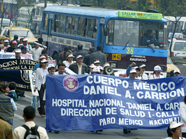 Con el fin de que sus remuneraciones se incrementen de S/.850 a S/. 7.200, el personal de salud que integra la Federación Médica Peruana- FMP- acata hoy un paro nacional de 24 horas en las afueras de los establecimientos.