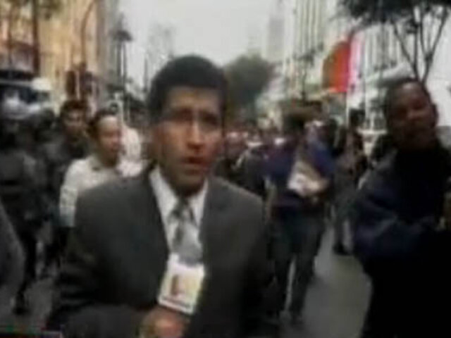 Los manifestantes se desplazaron desde la Plaza Dos de Mayo hacia el Parlamento y luego se dirigirán hacia la municipalidad de Lima, para hacer entrega de memoriales.