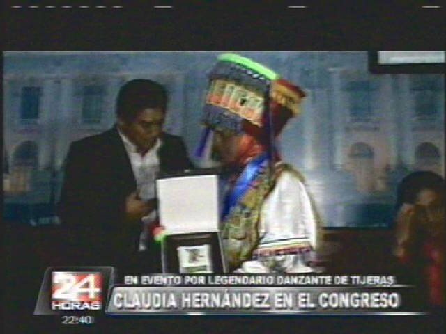 El congreso entregó un reconocimiento al danzante de tijeras Rómulo Huamaní por sus cuarenta años de trayectoria. Nuestra compañera Claudia Hernández participó en la ceremonia representando a la ONG "identidad y valores".