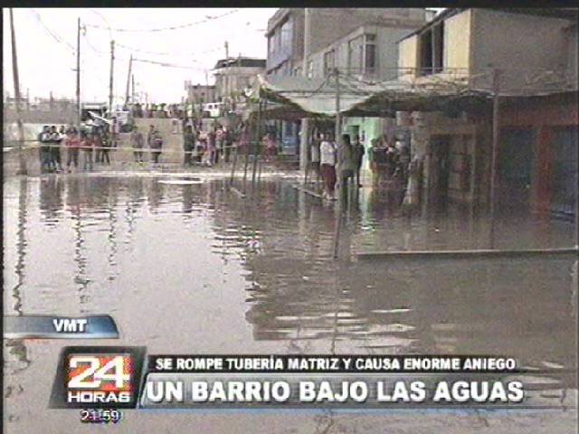 Cientos de pobladores de Villa María del Triunfo fueron afectados por un gran aniego producido por la rotura de una tubería matriz.