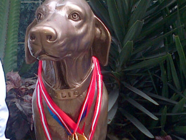 El perro ‘Julio’ fue ascendido a Capitán por su destacada labor en la Policía. En su honor se levantó un monumento en Miraflores.