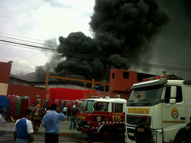Un gran incendio se registró en la fábrica de plásticos Contiplast, ubicada en la cuadra 12 de la avenida El Santuario, en el distrito de San Juan de Lurigancho.