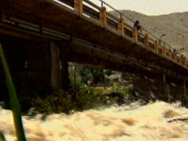 Puente Girasoles en Chaclacayo a punto de caer por crecida del Río Rímac