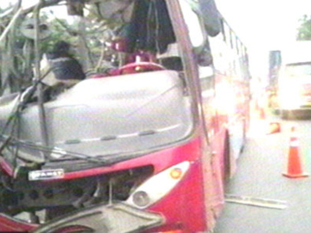 Un ómnibus repleto de pasajeros se estrelló contra un poste en Surco. Acusan al chofer de conducir a excesiva velocidad.
