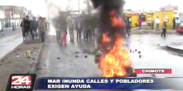 Una situación más grave se vive en Chimbote donde varias casas fueron inundadas. Sus habitantes protestaron por no recibir ayuda de las autoridades.