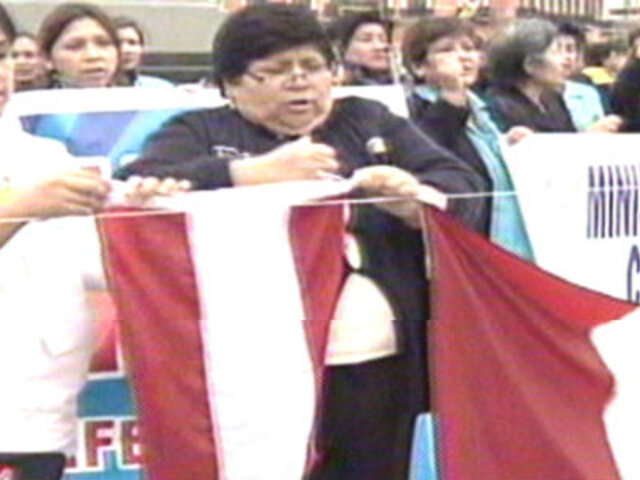 Enfermeras protestan con lavado de bandera en Plaza Bolognesi