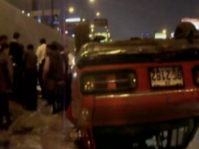 Auto quedó volcado tras accidente en Vía Expresa de Paseo de la República
