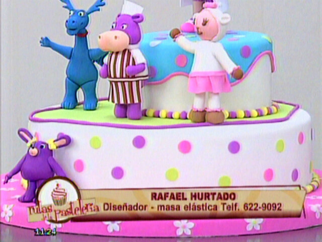 Como todas las semanas, el chef Juan Carlos nos brindó otra de sus clases demostrativas para enseñarnos a preparar y decorar deliciosos postres. Y esta mañana realizó una clase para diseñar una torta navideña en masa modelado. Usted necesitará para la decoración, goma trangacanto Jofsac, manteca hidrogenada, azúcar impalpable Ludafa y agua caliente. Por otro lado, el conductor de Rutas de la Pastelería invitó a todo el público emprendedor a asistir al taller de Cup Cakes motivo ‘Navidad’, este 02 de noviembre a las 10:00 a.m. en la escuela El Dulce Hecho Arte.