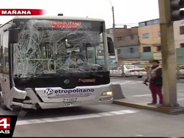 Esta mañana, un bus del Metropolitano chocó en la avenida Caquetá, a la altura del Parque del Trabajo en San Martín de Porres. La unidad impactó contra un semáforo y luego con otro bus del citado servicio. Según testigos, una cúster de la empresa Orión se habría pasado la luz roja y cerró el paso al vehículo de transporte, lo cual obligó al chofer a realizar una brusca maniobra impactando contra el semáforo. El resultado del accidente fue tres personas heridas, quienes fueron trasladadas a un hospital cercano.