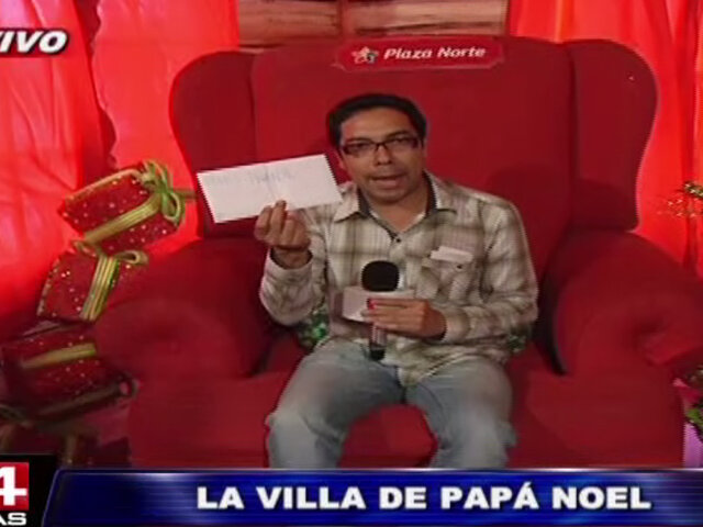 A pocos días de la ‘Noche Buena’, el centro comercial Plaza Norte volvió con la magia de la Navidad en la Villa de Papá Noel. Las novedades de este año es el gran árbol navideño, el más alto de Lima Norte, la fábrica de juguetes, panetones y de dulces, el nacimiento con animales vivos y los juegos mecánicos. La exposición se realizará hasta el próximo 5 de enero del 2014.