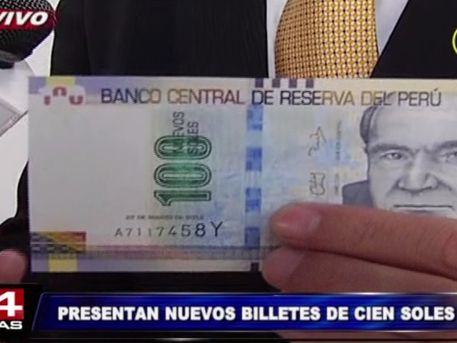 El Banco Central de Reserva puso en circulación los nuevos billetes de cien soles con renovados elementos de seguridad. Uno de los cambios es que al girar el dinero, el número 100 cambia progresivamente de color verde a azul, asimismo observará que un haz de luz recorre la denominación del billete.