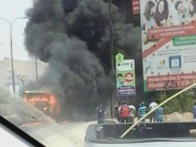Incendio de bus del Metropolitano causó alarma entre vecinos de Puente Piedra