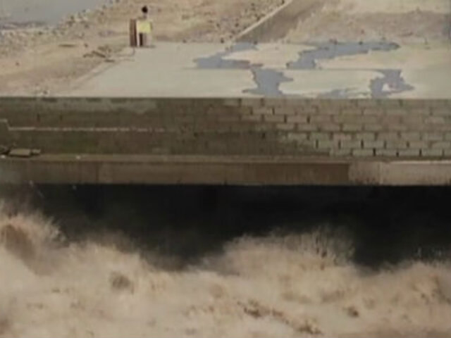 Se registró una nueva crecida del caudal del río Rímac. La fuerza del agua empezó a rebalsar los muros de contención del proyecto Vía Parque Rímac.