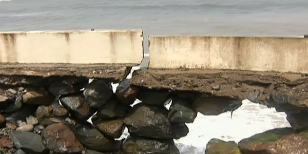 Un fuerte oleaje destruyó parte del malecón de la Costa Verde y provocó que cuatro conocidos locales comerciales corran el riesgo de venirse abajo.