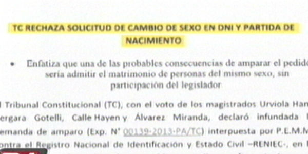 El Tribunal Constitucional dio sus descargos por la negativa de cambiar de sexo a un transexual en su DNI. Su defensa anunció que apelarán a la Corte Interamericana.