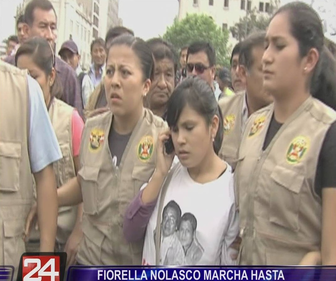 Fiorella Nolasco, hija del asesinado ex consejero regional de Áncash, Ezequiel Nolasco, encabezó una marcha hacia el Poder Judicial. La joven utilizó chaleco antibalas durante su recorrido por las calles de Lima.