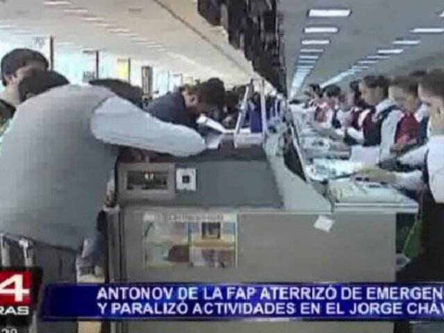 El aterrizaje de emergencia de un avión de la Fuerza Aérea del Perú, detuvo las actividades en el Aeropuerto Internacional Jorge Chávez por más de una hora y media. Según un comunicado oficial, el avión Antonov habría utilizado las pistas del terminal aéreo, debido a fallas mecánicas.