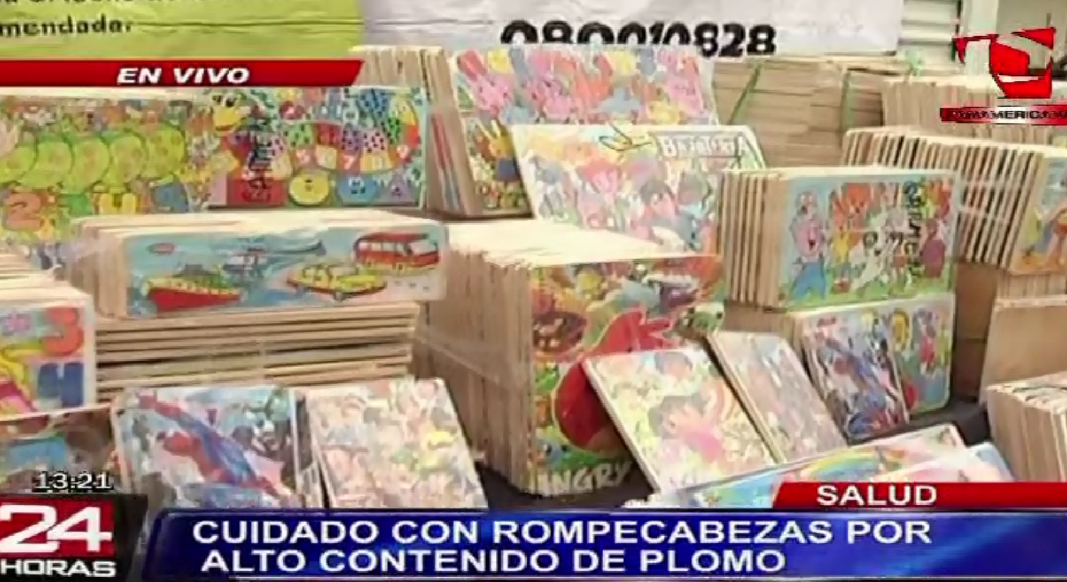 La Dirección General de Salud Ambiental (Digesa) del Ministerio de Salud (Minsa) realizó un operativo inopinado en las galerías del Centro de Lima y Villa María del Triunfo, donde decomisaron 4,500 rompecabezas y 4,940 sticker que no contaban con el Registro Nacional y Autorización Sanitaria, y porque muchos de estos productos tenía un alto contenido de plomo.