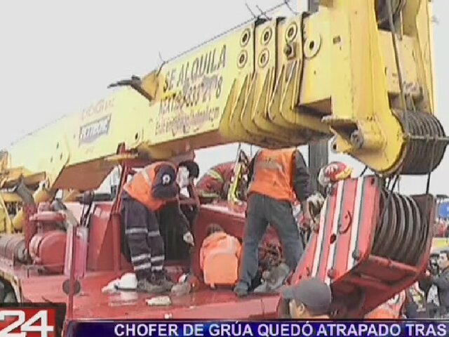 Chofer de grúa telescópica quedó atrapado tras choque en Vía de Evitamiento