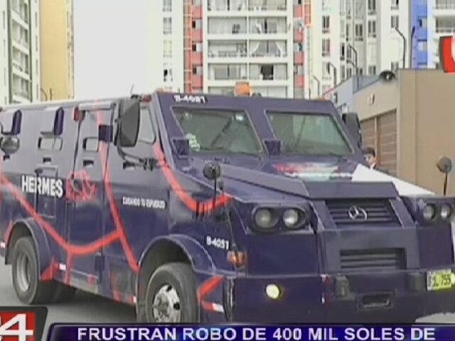 Una rápida acción policial frustró el robo de 400 mil soles de un vehículo de caudales en San Miguel. Fueron cinco los delincuentes que habían logrado reducir a los agentes de seguridad de la empresa Hermes.