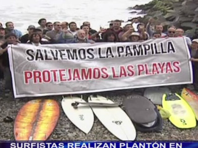 En Miraflores, decenas de surfistas realizaron un plantón en la playa La Pampilla y protestaron por las obras en la Costa Verde.