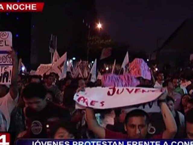 Esta noche, cerca de 10 mil jóvenes llegaron hasta las puertas de la Confederación Nacional de Instituciones Empresariales Privadas (CONFIEP) en protesta contra la ley laboral juvenil.