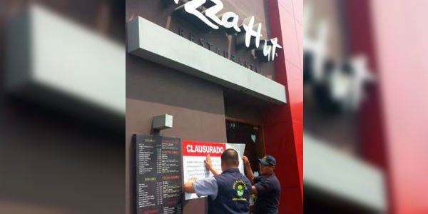 Tras encontrar insectos muertos en los depósitos de alimentos, la Municipalidad de La Molina y Digesa clausuraron esta tarde el local de Pizza Hut de la cuadra 52 de la avenida Javier Prado. Además, se le aplicó una multa de 3,850 (1 UIT).