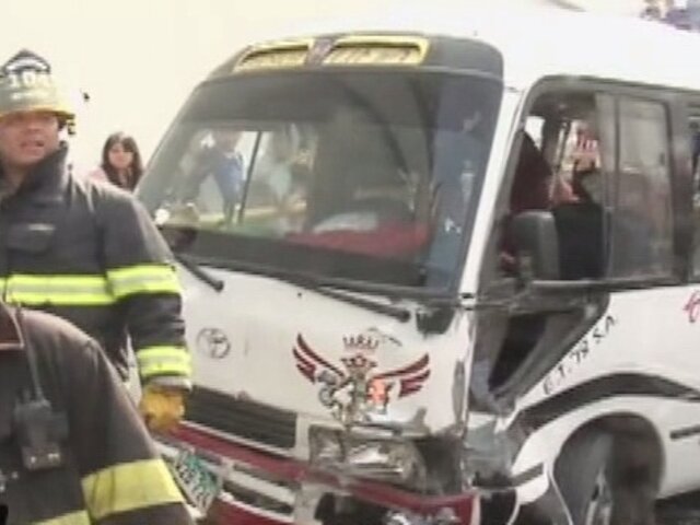 Al menos siete personas resultaron heridas luego que una cúster de El Chosicano se estrellara contra un vehículo de los Bomberos en la Vía Expresa Grau. Testigos coincidieron en que el conductor de la unidad de emergencia fue el responsable del accidente.